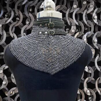 Aluminium Chainmail Haubergeon – 9MM Flat Ring Riveted with Washer Brown Leather Trim