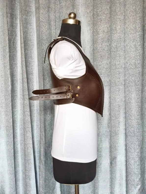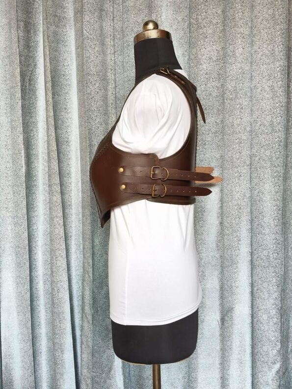 Female Warrior Leather Chest Armour – Brown with Buckle Closer